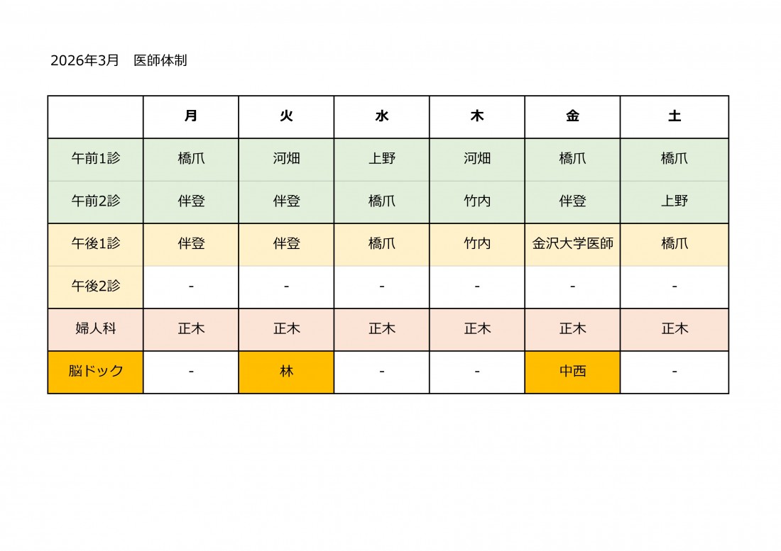 2026年3月度 診察医師 担当表
